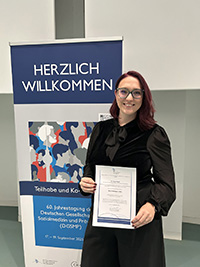 For her achievement, the early-career researcher received the dissertation prize of the German Society for Social Medicine and Prevention (DGSMP) in September, which annually recognizes an outstanding dissertation from the field. The prize includes a prize money of 1,000 euros and additionally includes a one-year, fee-free membership in the DGSMP as well as coverage of travel costs to the society's next annual conference. The prize jury consisted of Dr. Adrienne Alayli, Prof. Dr. Susanne Hartung, Dr. Janice Hegewald, Prof. Dr. Eike Quilling, and Prof. Dr. Enno Swart.